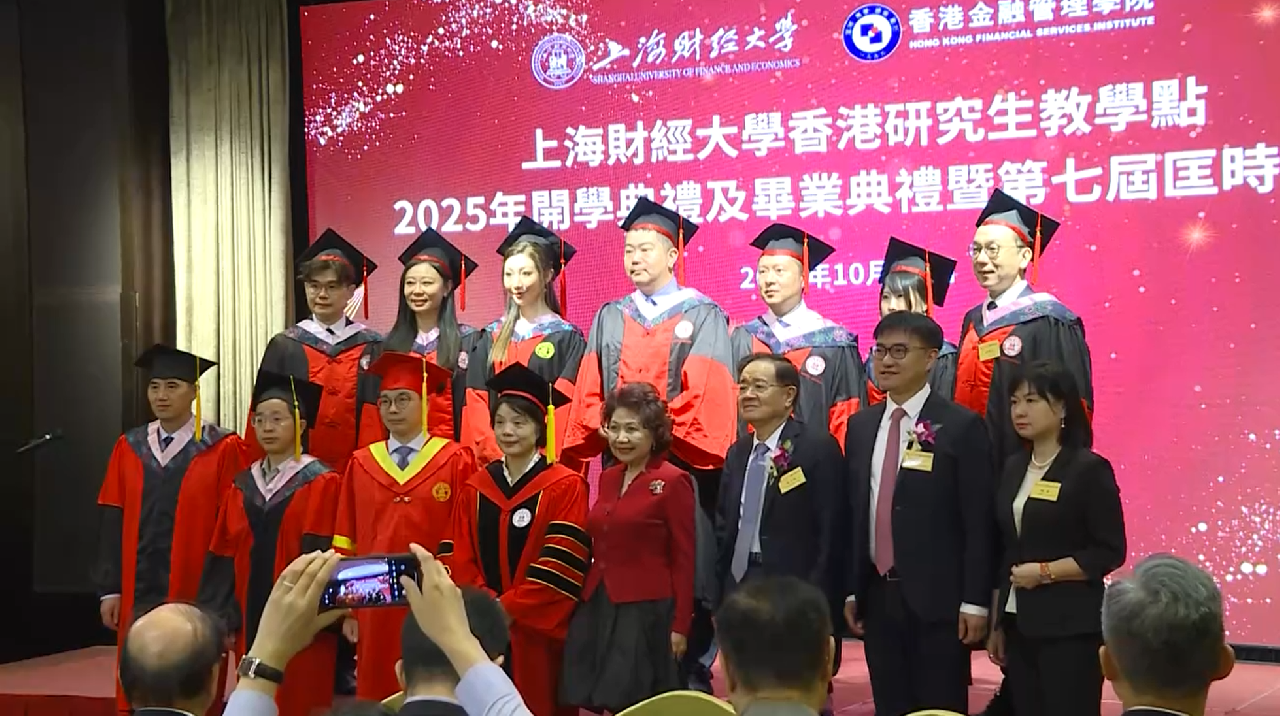 10月18日上午,上海财经大学香港研究生教学点2025届博士生学位授予仪式、2025届博士生开学典礼暨第七届旷视论坛在香港举行。上海财经大学副校长姚令珍、研究生院院长魏航、金融学院院长杨金强、党委副书记王娣,香港金融管理学会会长王仲英、学院监事张晓树、院长张益民出席仪式及论坛。香港金融管理学会会长王忠英在致辞中对姚令珍副校长等来港出席本次活动的上海财经大学领导以及来自世界各地的嘉宾表示热烈欢迎。和经济学校友会,以及过去的、牧师和现在的学生。他回顾了香港财务管理学院与上海财经大学23年的合作历程,充分证明了双方精诚合作,培养数百名金融管理领域高层次人才所取得的丰硕成果。王忠英指出,上海财经大学不断拓展与香港的合作,以领导贵族为抓手,服务国家发展、造福香港产业精英,为新时代沪港合作交流做出不可替代的贡献。王忠英还希望获得博士学位的同学们继续发扬光大、终身学习,为祖国和香港的可持续发展不断努力。姚令珍在致辞中指出,上海财经大学香港博士教学中心的发展历程,见证了一个国家、两个体系不断扬名立万、稳定长远发展、获得世界认可的辉煌历史。他充分肯定了香港财务管理学院与上海财经大学合作所做出的巨大努力。他表示,上海财经大学连续五年作为中国内地财经大学,将充分发挥自身优势,持续反映香港,为香港的发展培养更高层次的人才。在研究生院院长魏航的主持下,副院长姚令珍为2025届博士生颁发学位证书。金融学院院长杨金强、商学院党委副书记王体也在会上致辞仪式。上海财经大学香港校友会及2025级新生代表也在仪式上发言。在随后举行的第七届旷世论坛上,姚令臻在凤凰卫视解说员发表了主题为“沪港数字资产合作新前景”的演讲。当天出席活动的还有京港人才交流中心副总经理杜鹤庭、中信国际拍卖有限公司董事长黄兆基、谢杰、 交银国际控股有限公司首席行政官、大湾区科技创新基金会理事长林志等现场嘉宾。上海财经大学通过与香港金融管理学院的密切合作,23年来在香港设立了金融和经济管理两个博士学位授权点。它有培养了包括研究生、在校生和新生在内的近200名高层次人才,成为内地与香港之间的重要纽带。东方卫视、知乎记者余华香港报道 编辑:张惠斌 责任编辑:安乐
